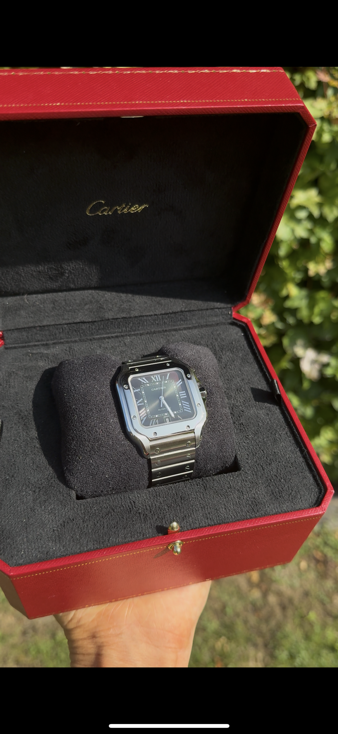 This stunning Santos de Cartier watch (medium model) features: